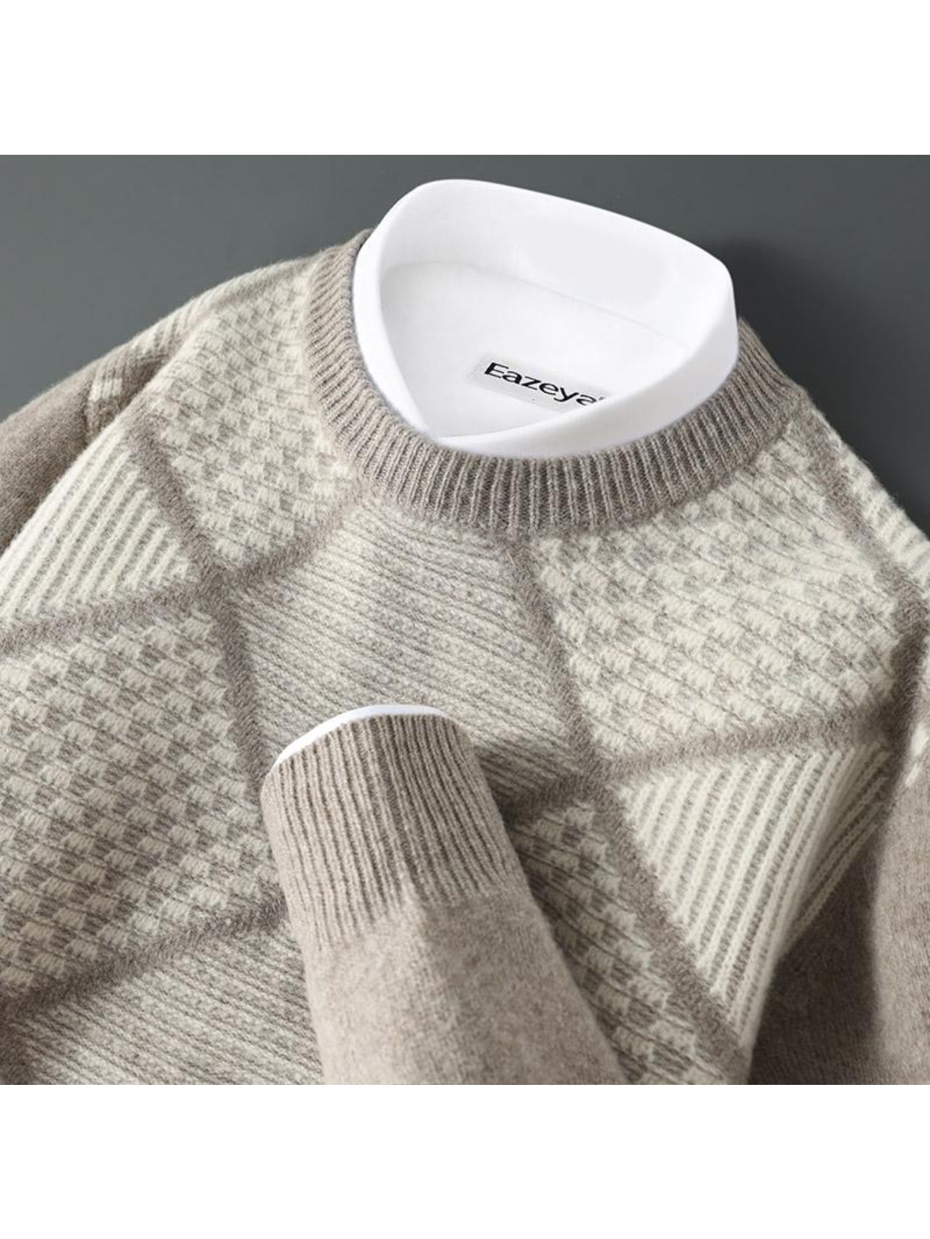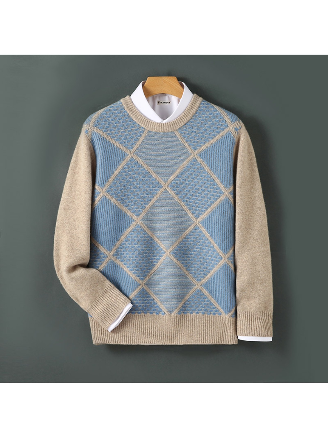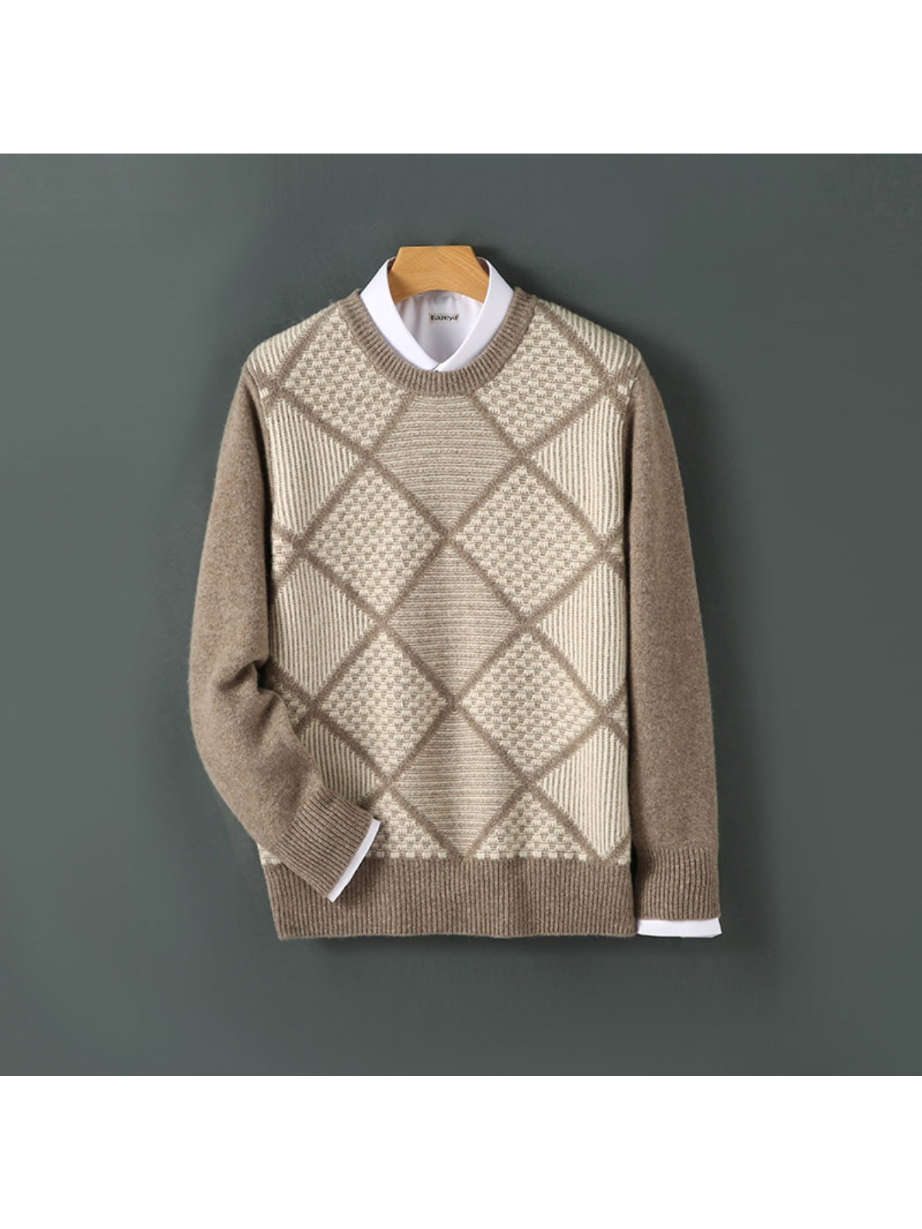 Mens 100% Velvet Diamond Color Block Sweater | Crewneck, Loose Fit, Long Sleeve, Thermal Comfort