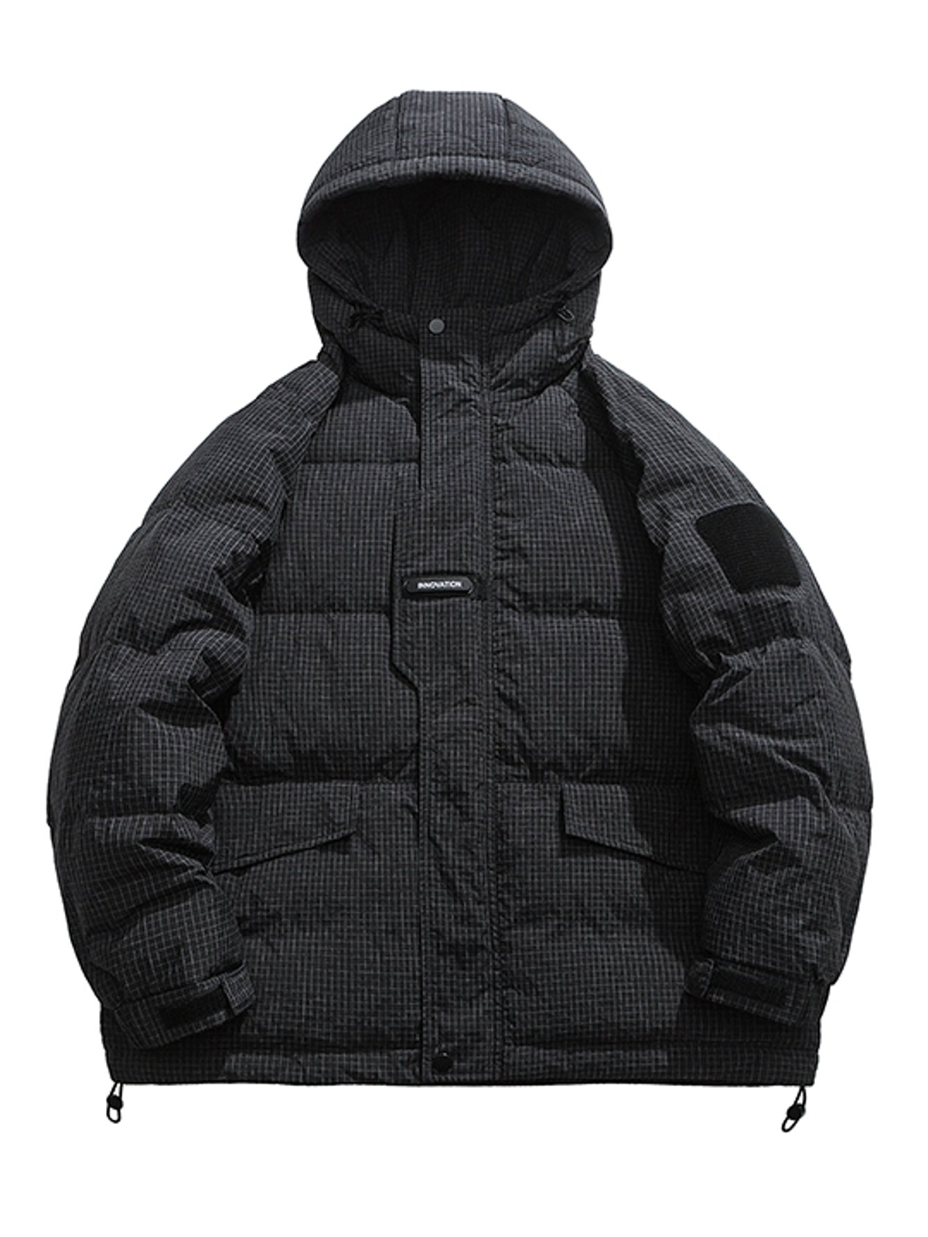 Winter Thickened Duck Down Jacket - Hooded Insulated Coat with Plaid Pattern, Loose Fit & Full-Zip Closure, Long Sleeve Casual Outerwear for Cold Weather | High Quality, Pockets