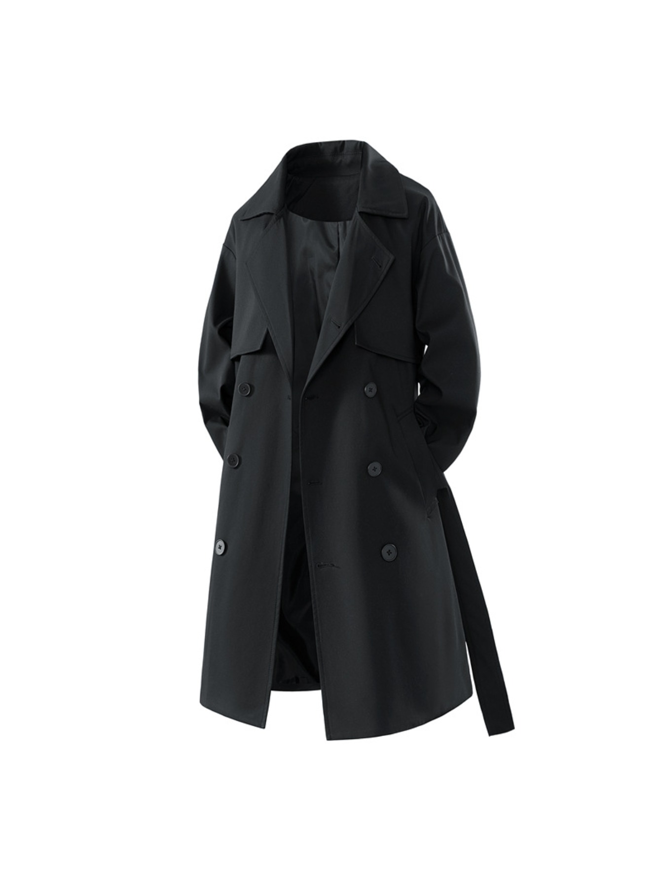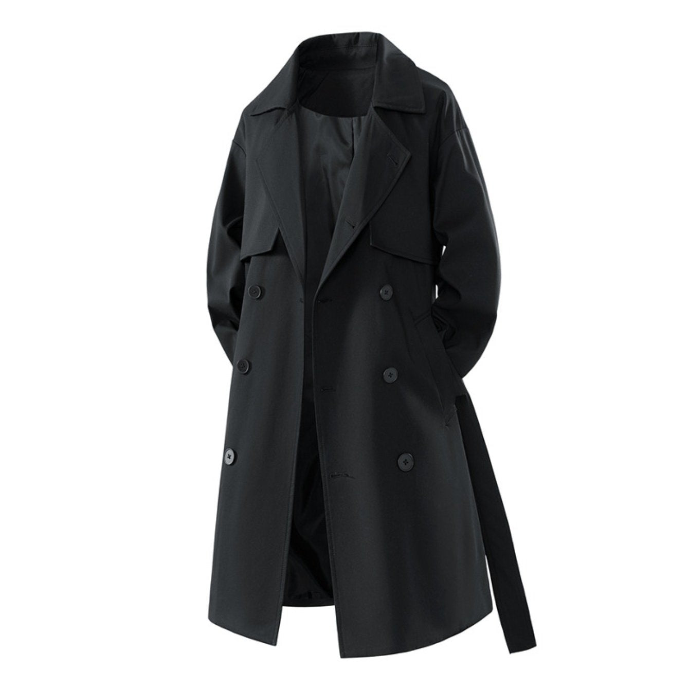 Men'S Korean Style Mid-Length Windbreaker Jacket - High Neck Full-Zip Coat with Full-Zip Front Closure, Loose Fit All-Season Outerwear, Casual to Formal Coat for Men, Korean Fashion Outerwear for Autumn Winter