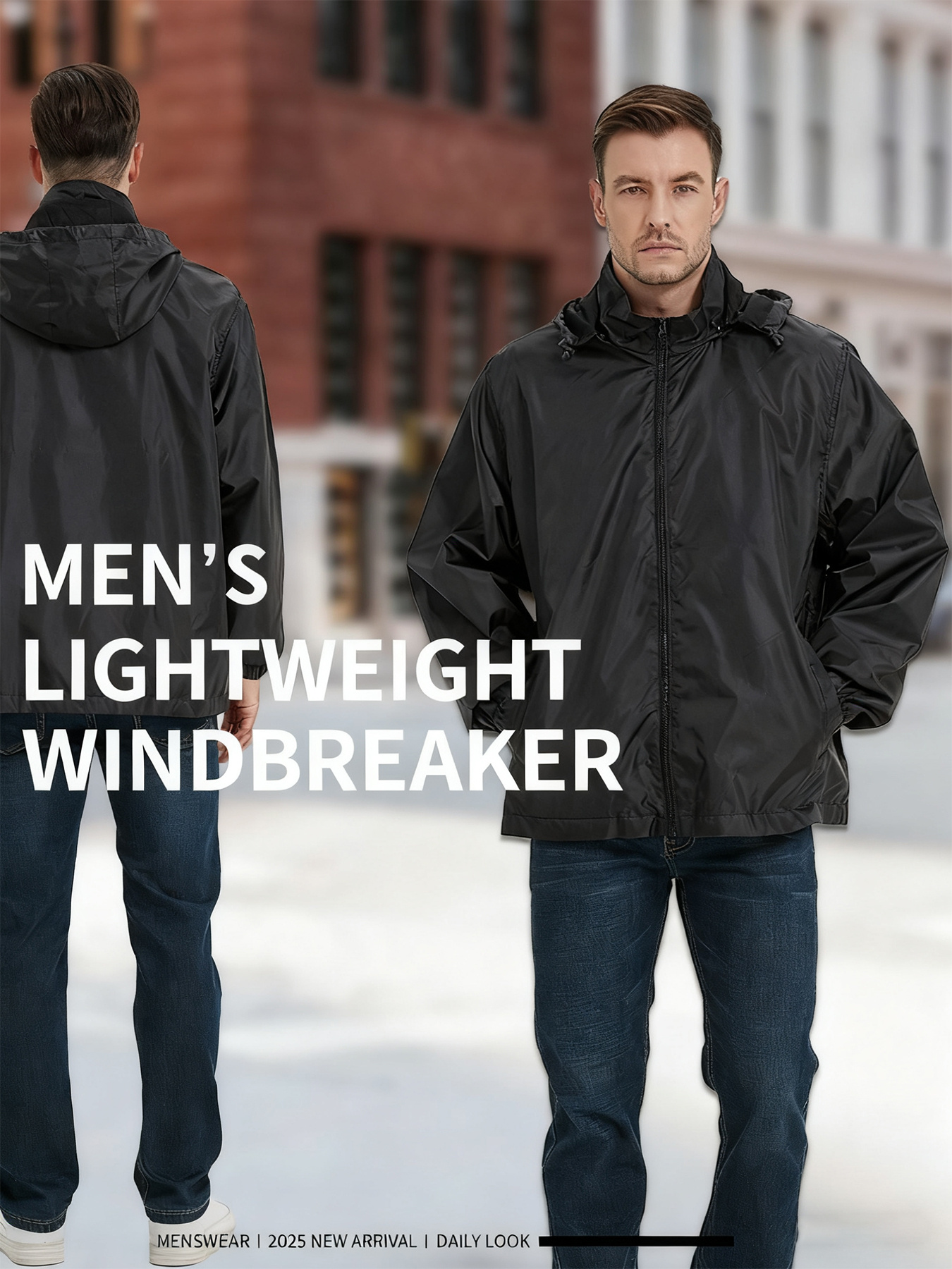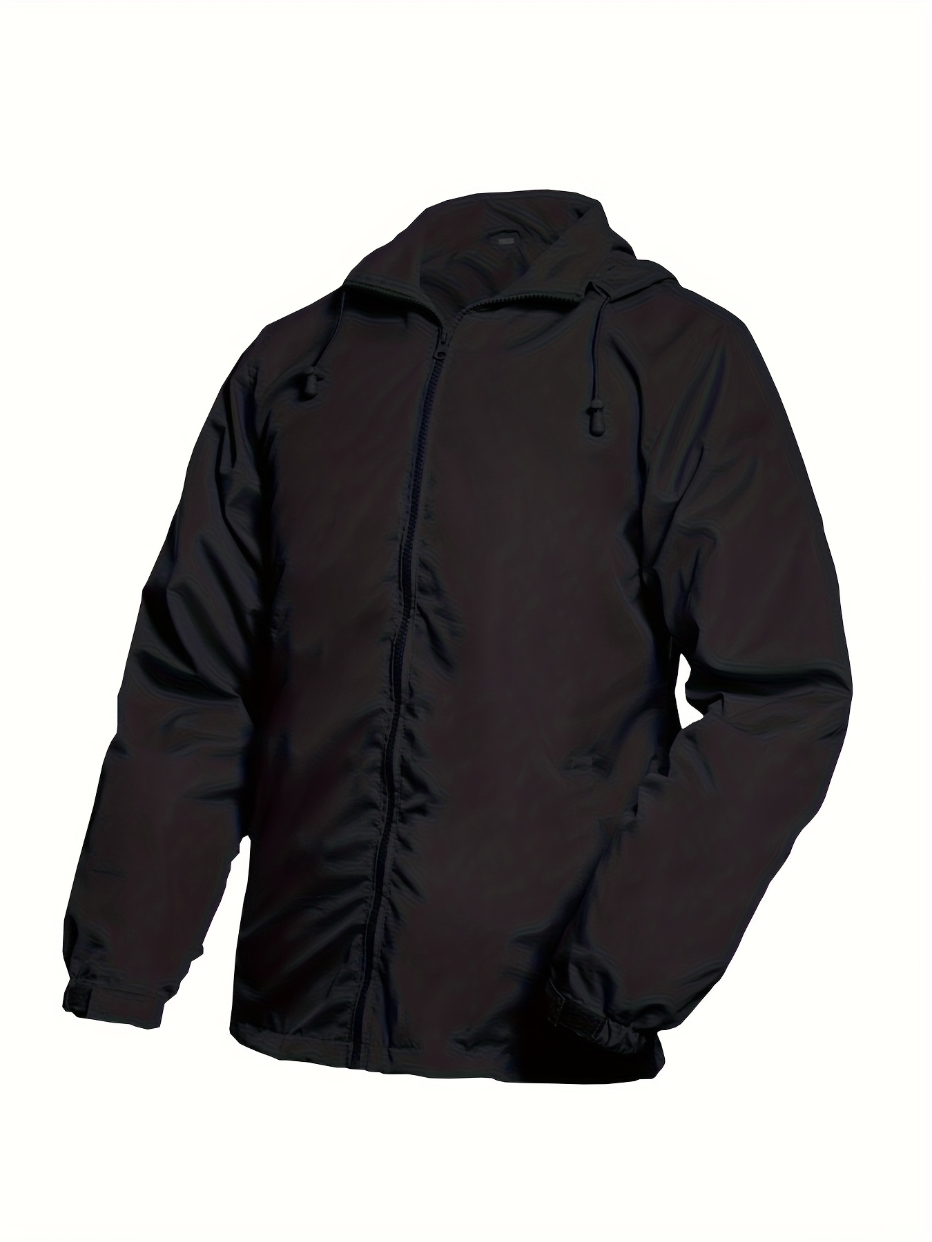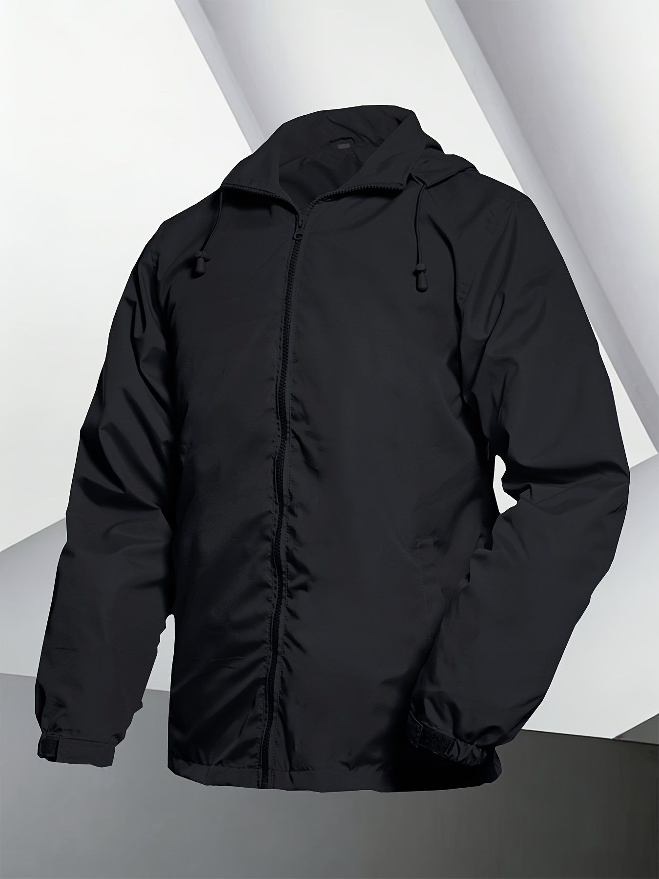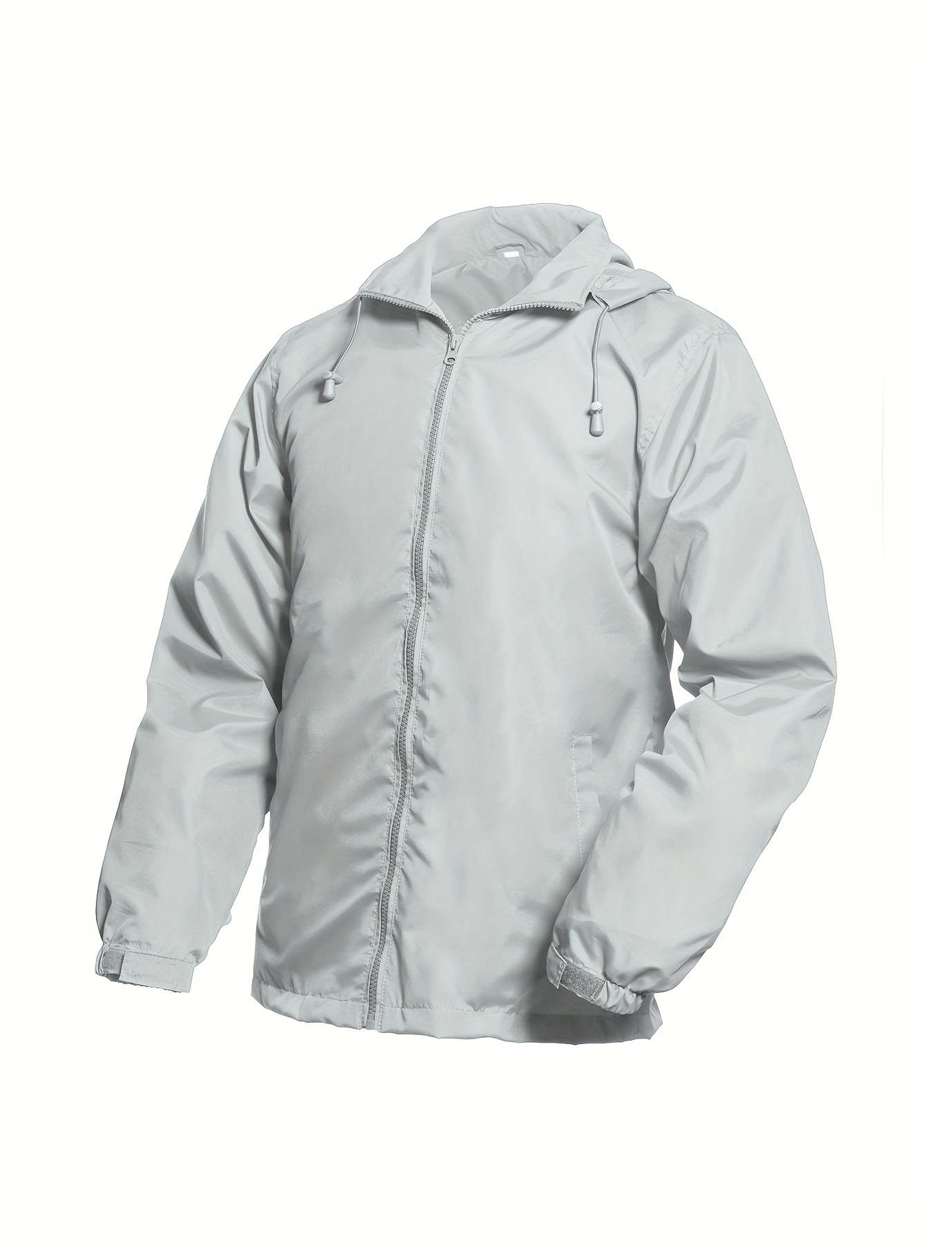 Men's Lightweight Windproof Full-Zip Jacket with Adjustable Hooded Raincoat, Durable Non-Stretch Windbreaker Coat