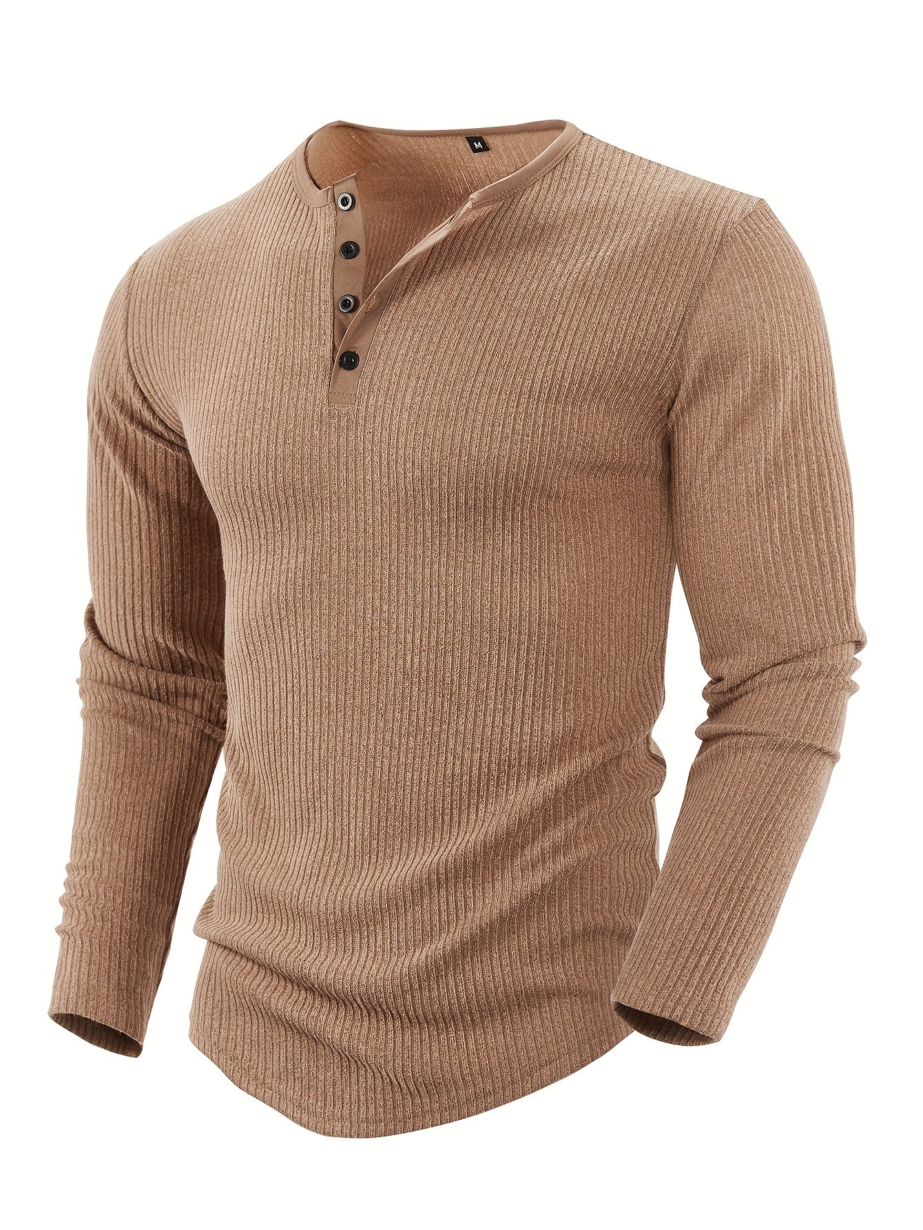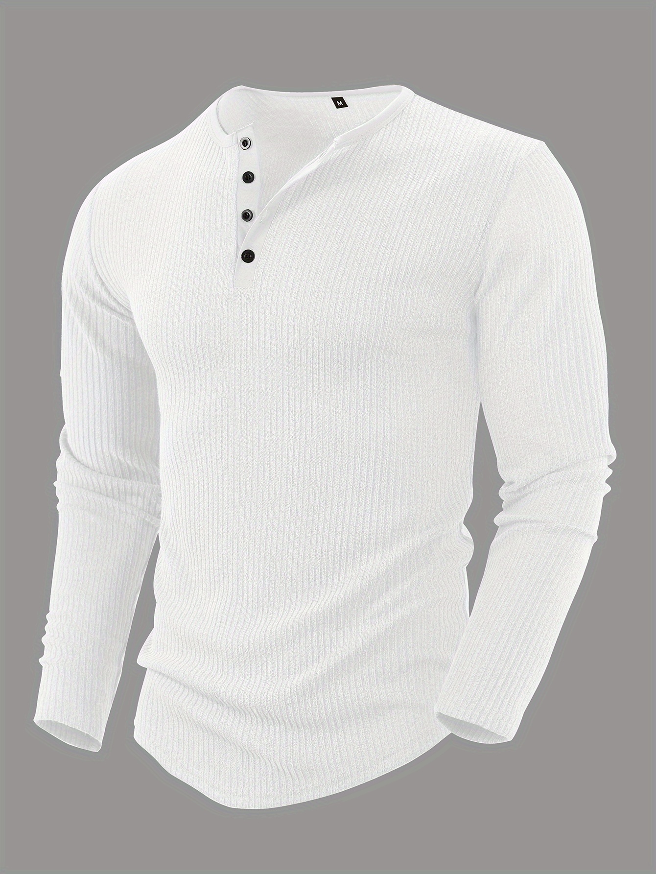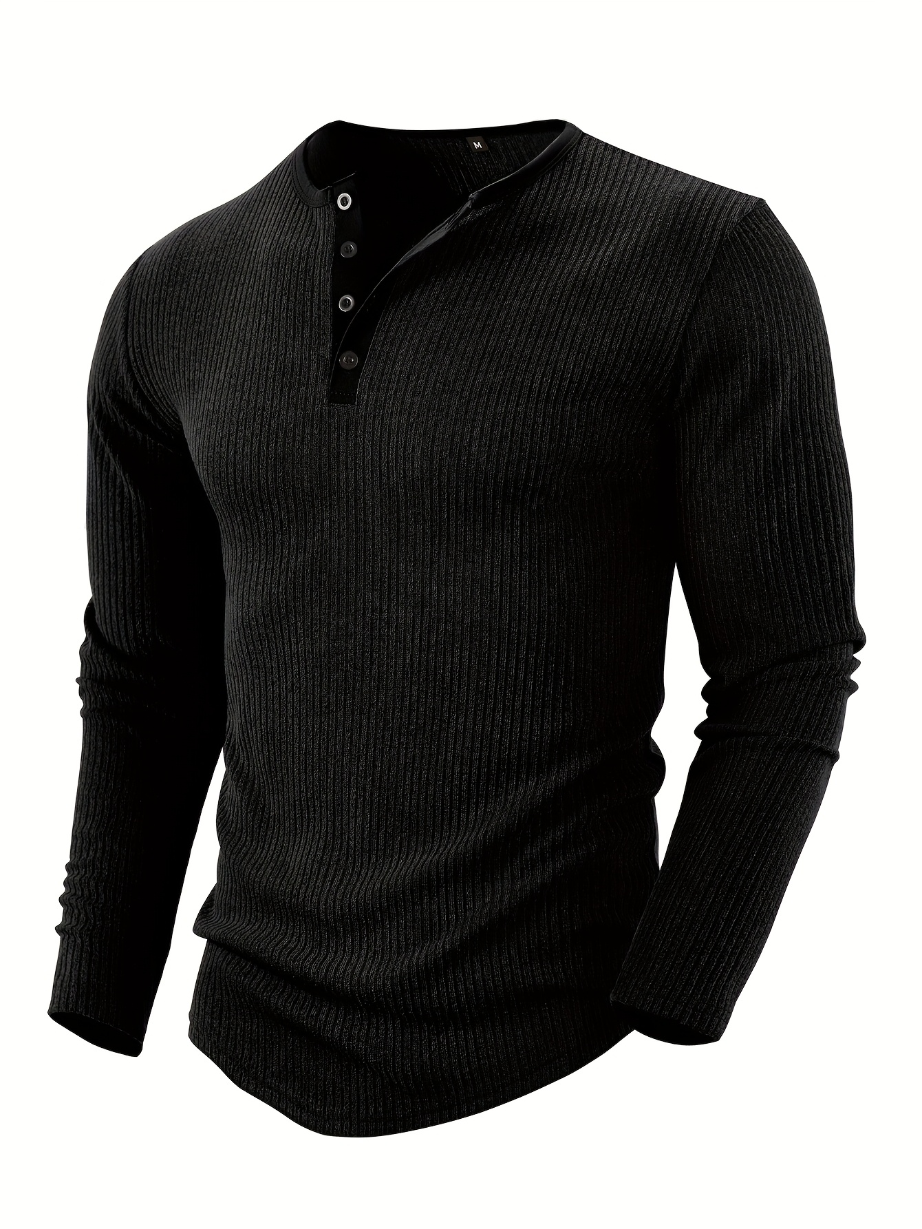 Men'S Solid Color Vertical Striped Stylish Henley Shirt with Four Buttons, Breathable, Comfortable, And Versatile