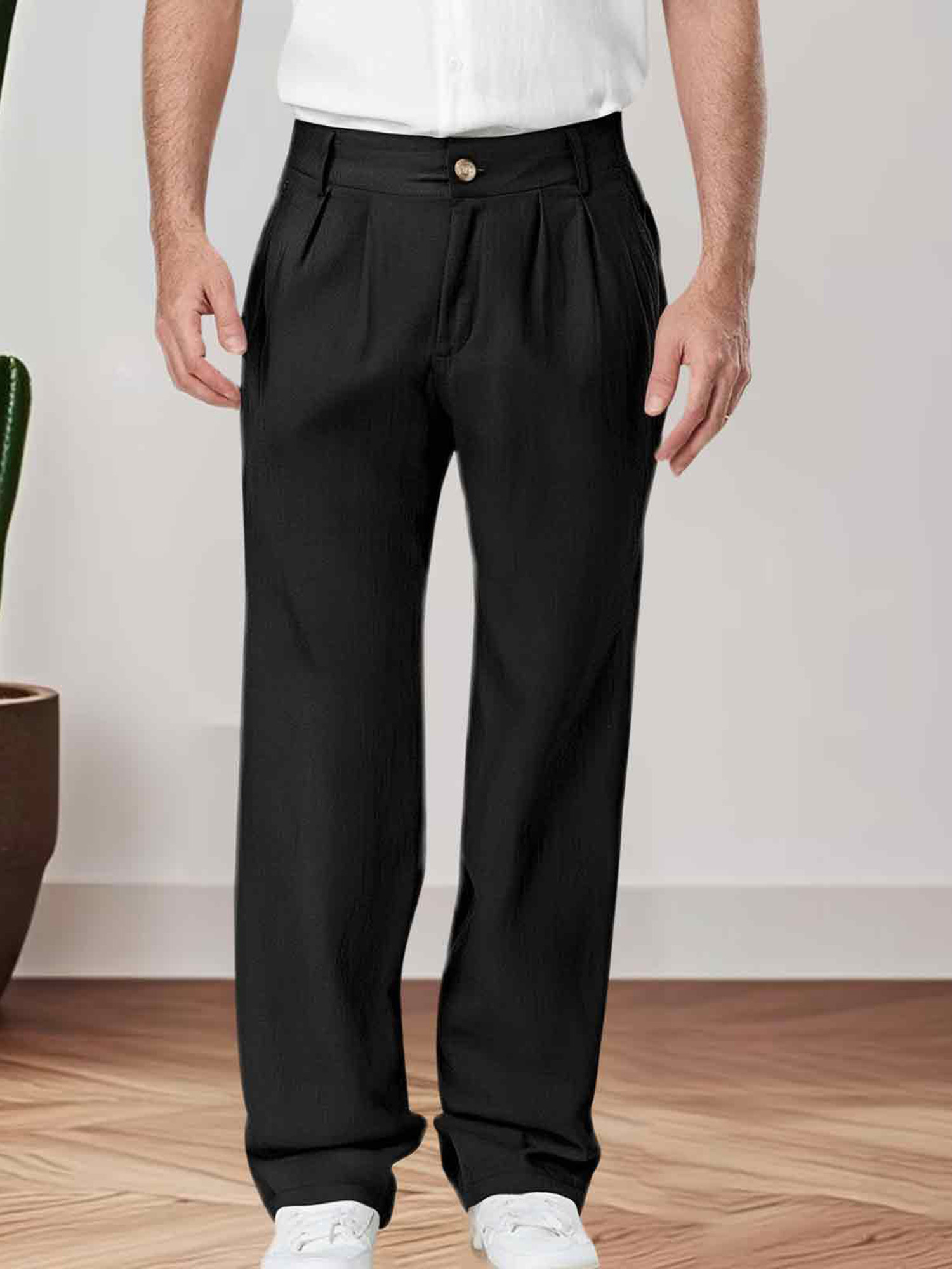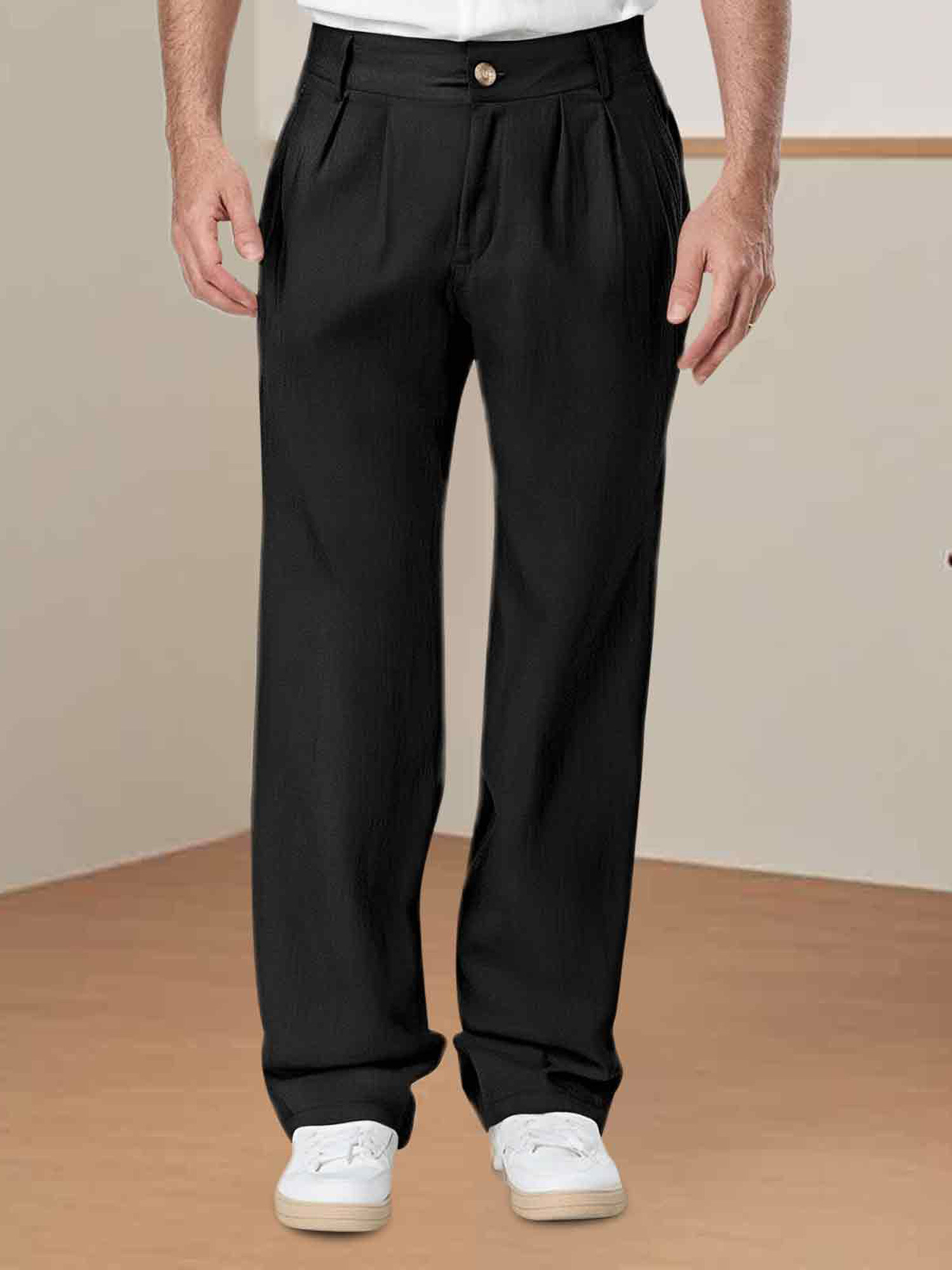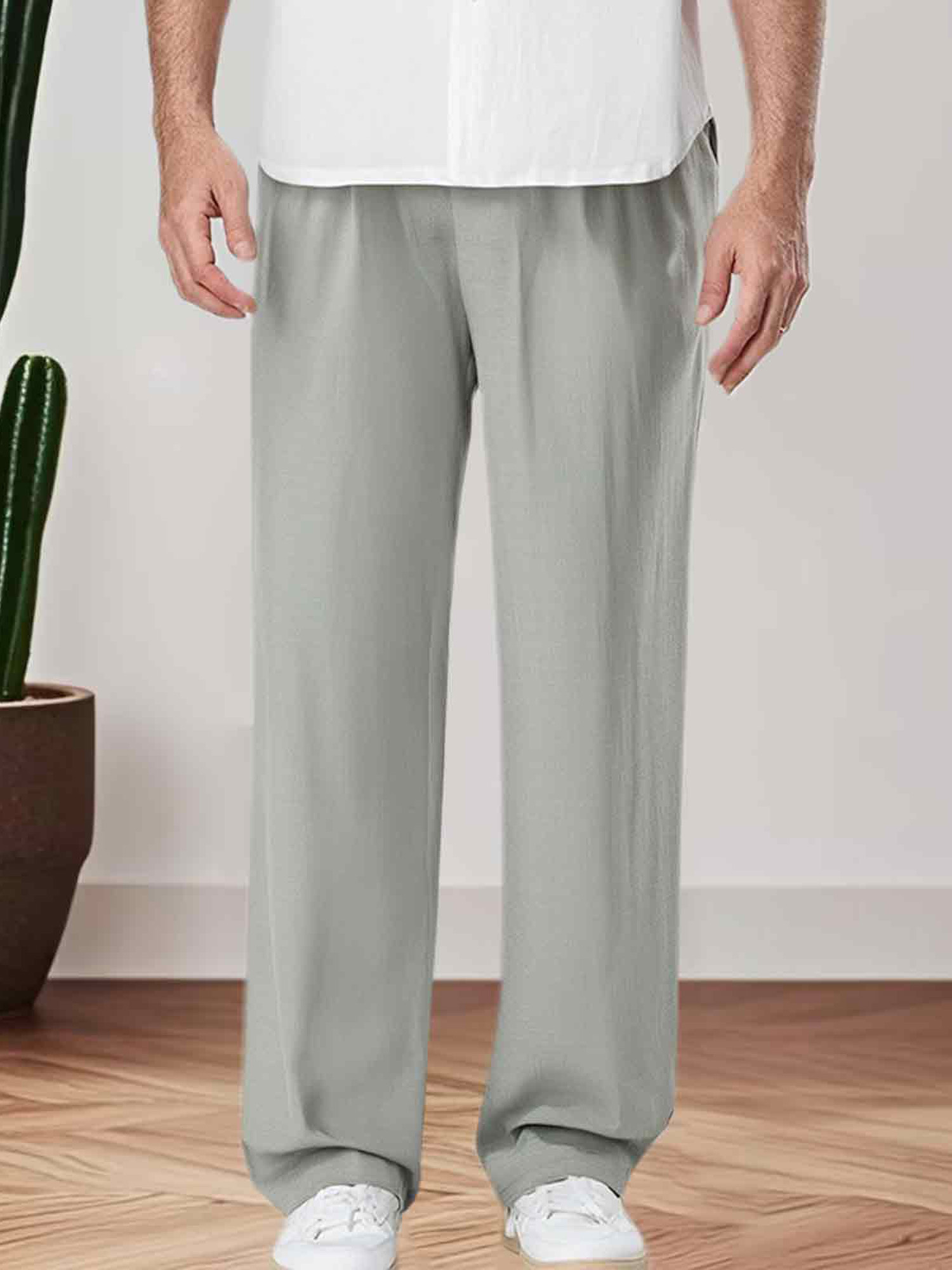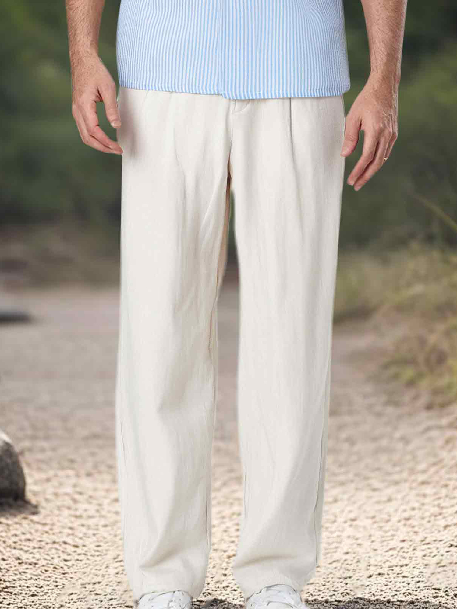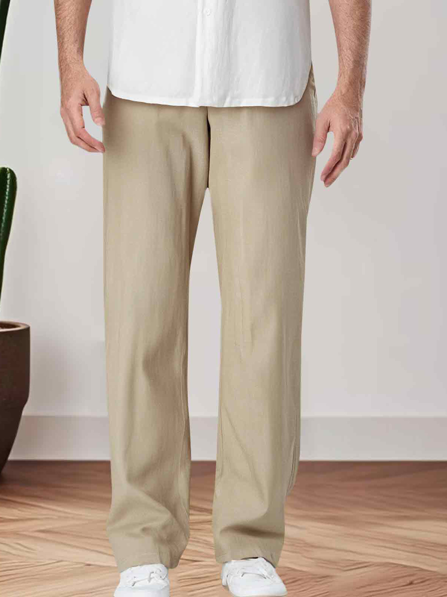 Men's Straight Leg Cotton Blend Casual Pants with Pockets - Solid Beige Color, Comfortable Travel & Streetwear Trousers