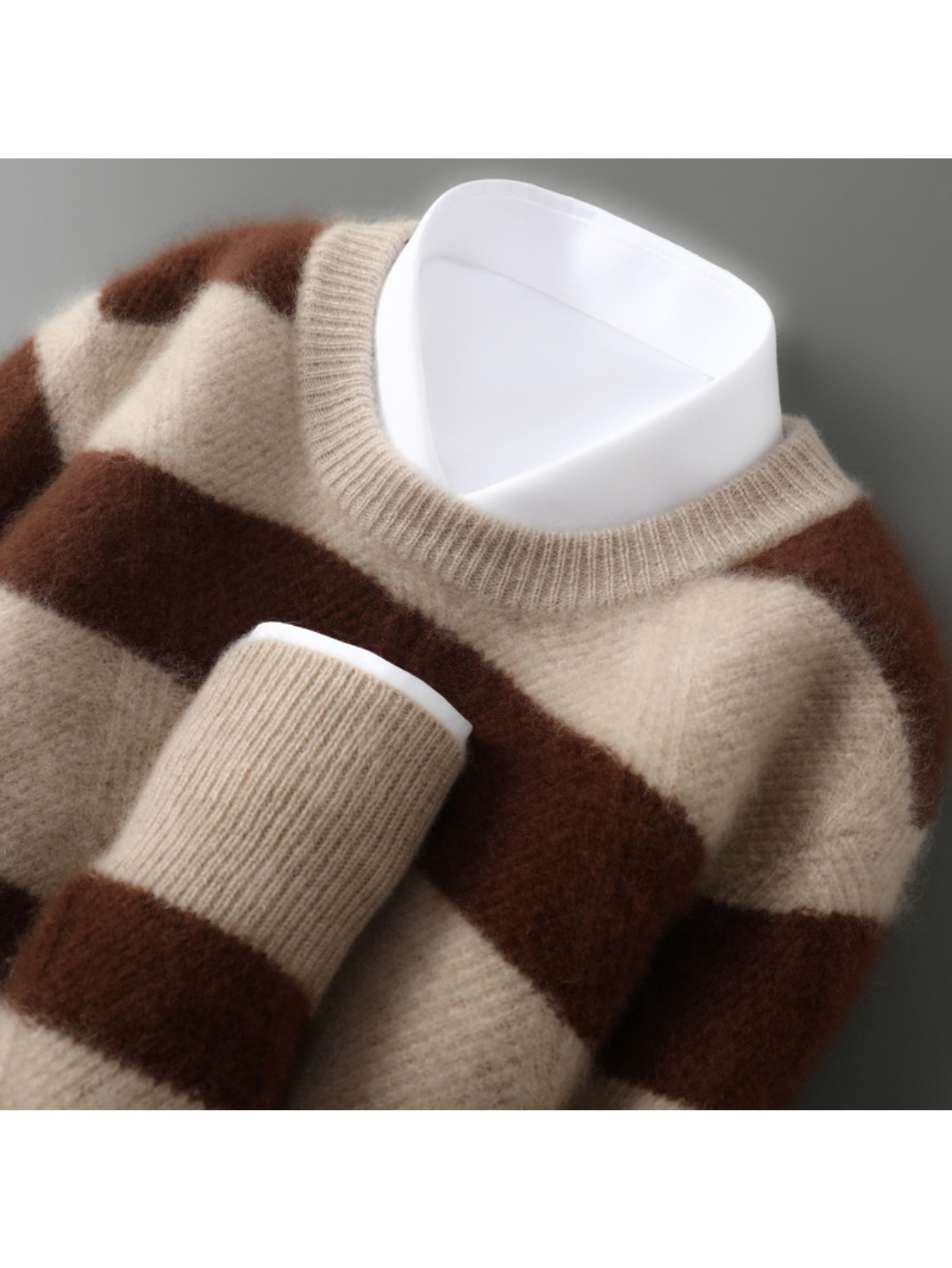 New Autumn And Winter Color-Blocked Thick Round-Neck Pullover Sweater for Men, Featuring a Relaxed Fit And Knitted Design