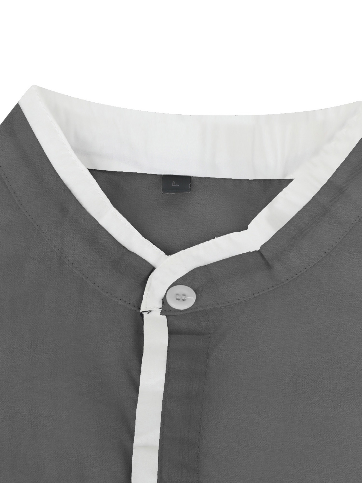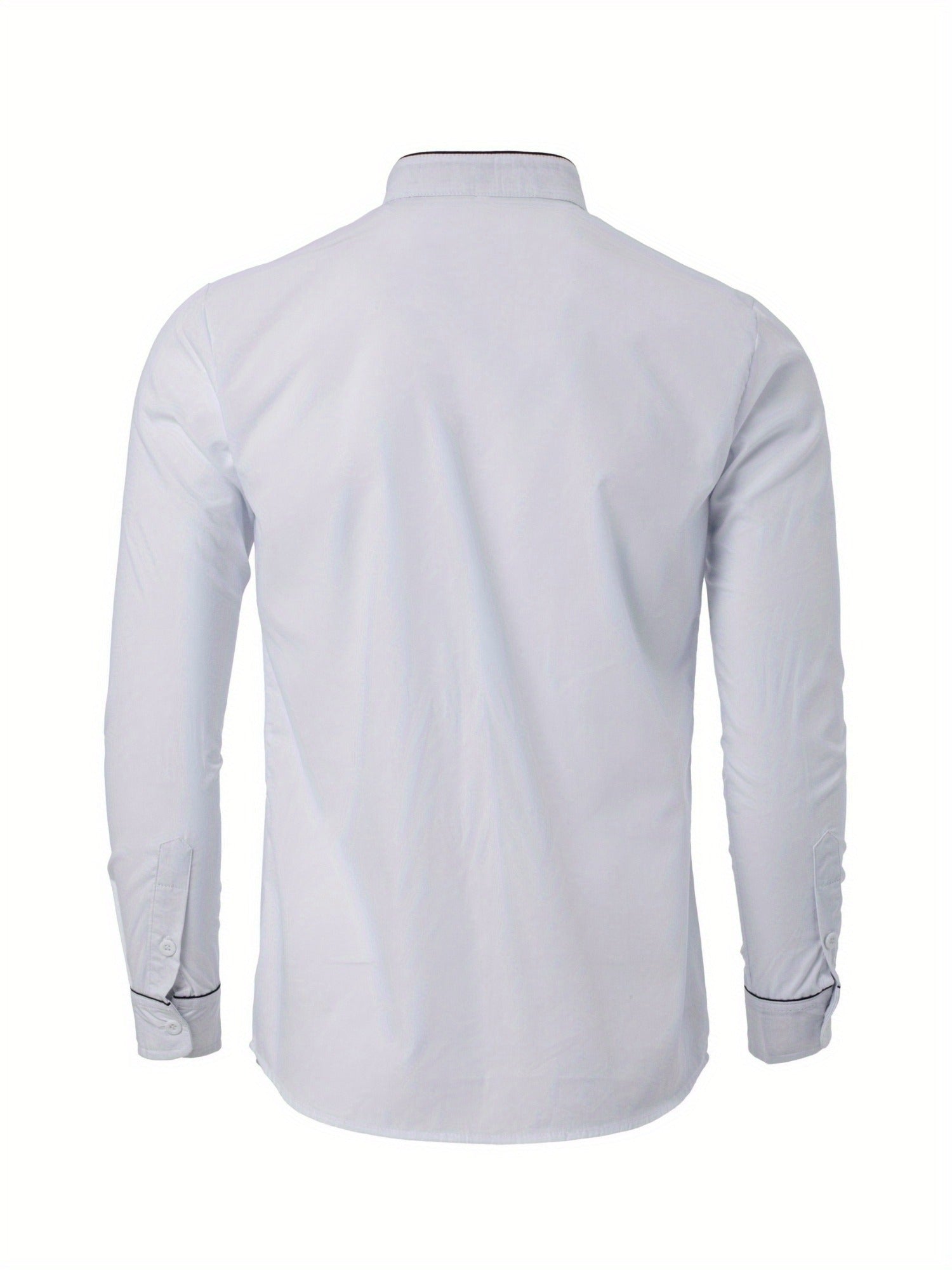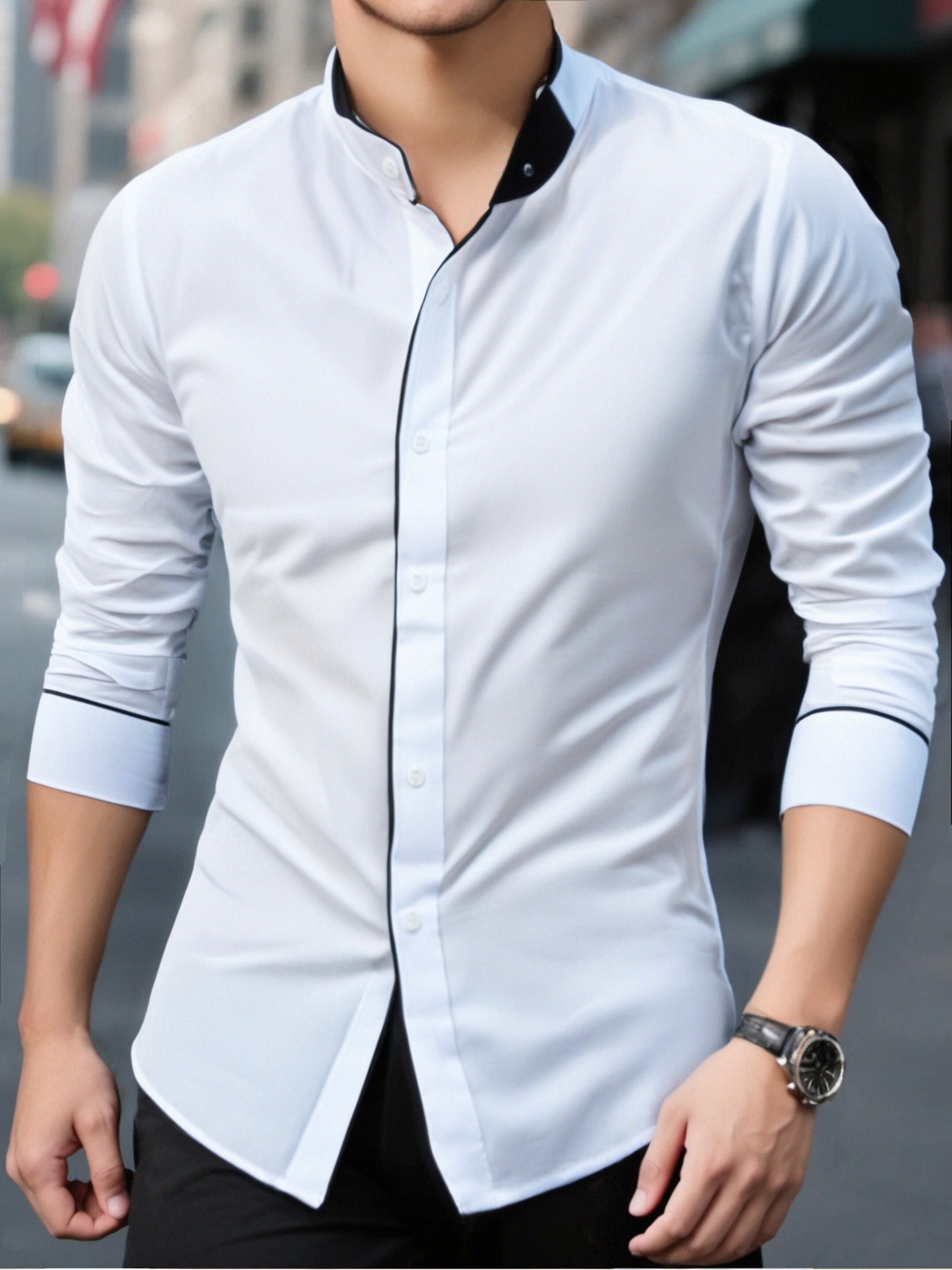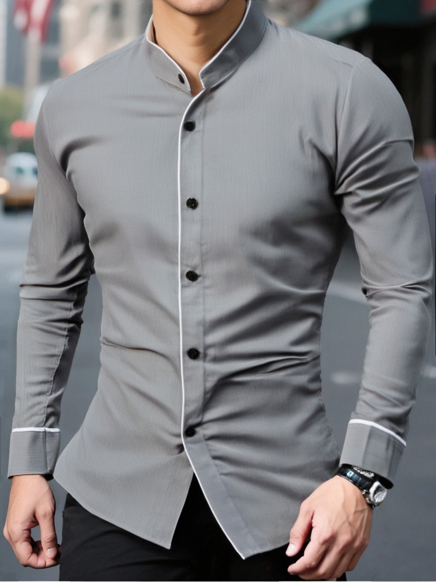 Precise Stand Collar Men'S Dress Shirt | No Wrinkle, Button Up, Fashionable Casual Attire, Comfortable, Regular Fit, Solid Color, Long Sleeve