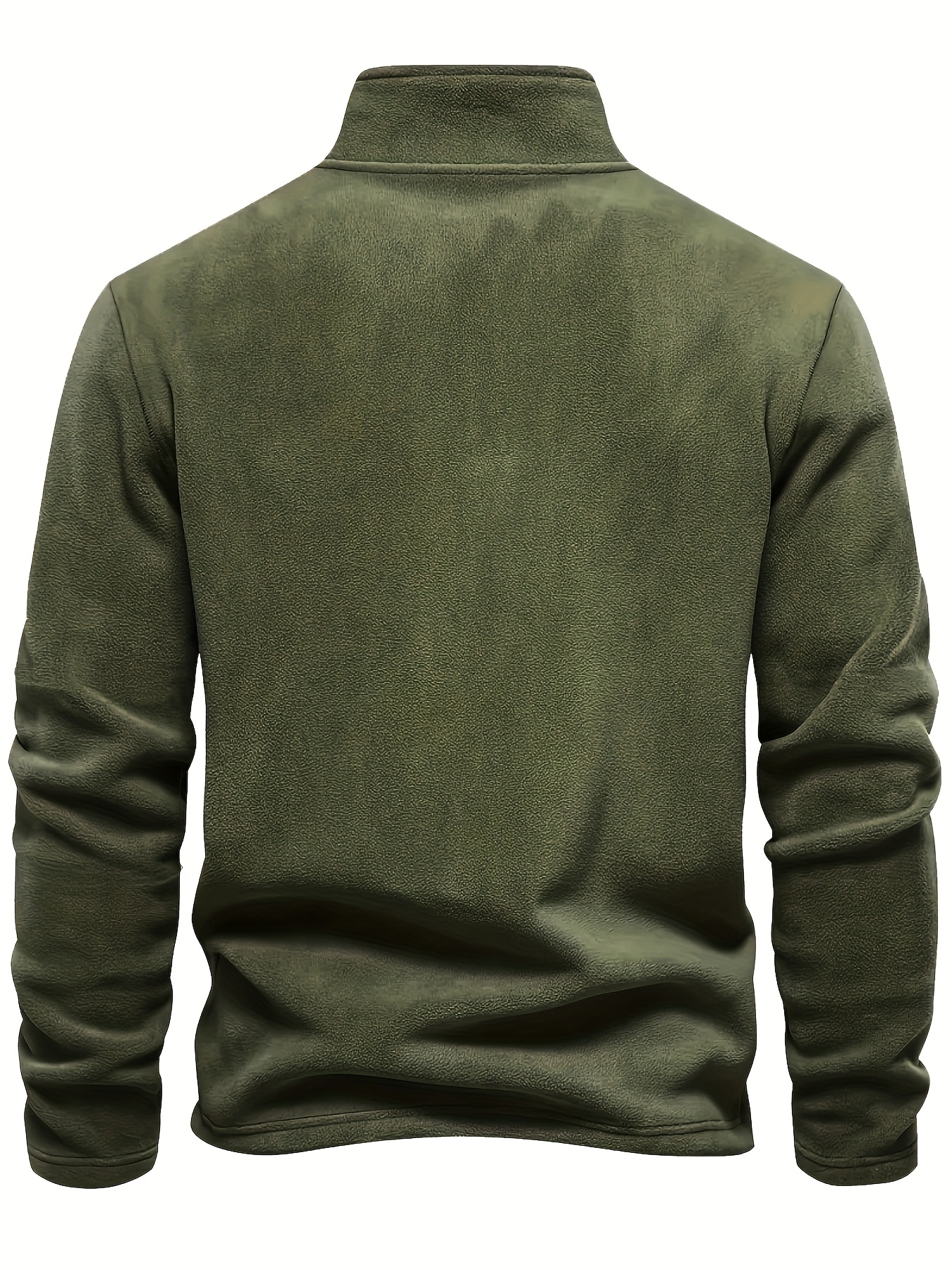 Warm Long Sleeve Men's Embroidered Fleece Pullover - Stylish Half-Zip Stand Collar Sweatshirt for Fall\Winter